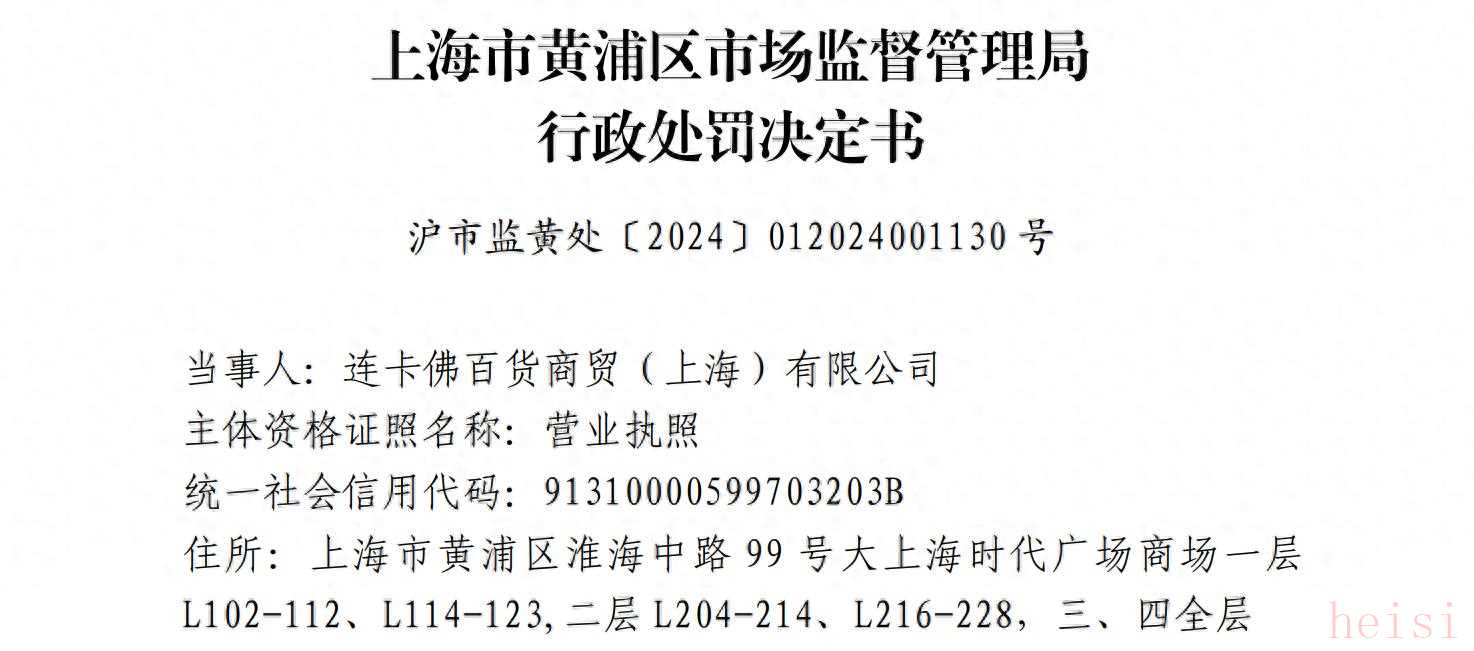 今年8月,經(jīng)上海市黃浦區(qū)市場(chǎng)監(jiān)督管理局查明,連卡佛百貨商貿(mào)(上海)有限公司在視頻賬號(hào)廣告中宣稱“成為大中華地區(qū)首個(gè)全渠道精品零售商”等描述,與事實(shí)不符,構(gòu)成了發(fā)布虛假?gòu)V告的行為,責(zé)令其停止發(fā)布違法廣告、在相應(yīng)范圍內(nèi)消除影響,并罰款6000元。此前在2022年,連卡佛百貨商貿(mào)(上海)有限公司因“加價(jià)”出售GANADAGOOSE(加拿大鵝)羽絨服等,違反了價(jià)格法規(guī)定,構(gòu)成經(jīng)營(yíng)者在標(biāo)價(jià)之外加價(jià)出售商品的行為,被上海市黃浦區(qū)市場(chǎng)監(jiān)督管理局罰款2000元。