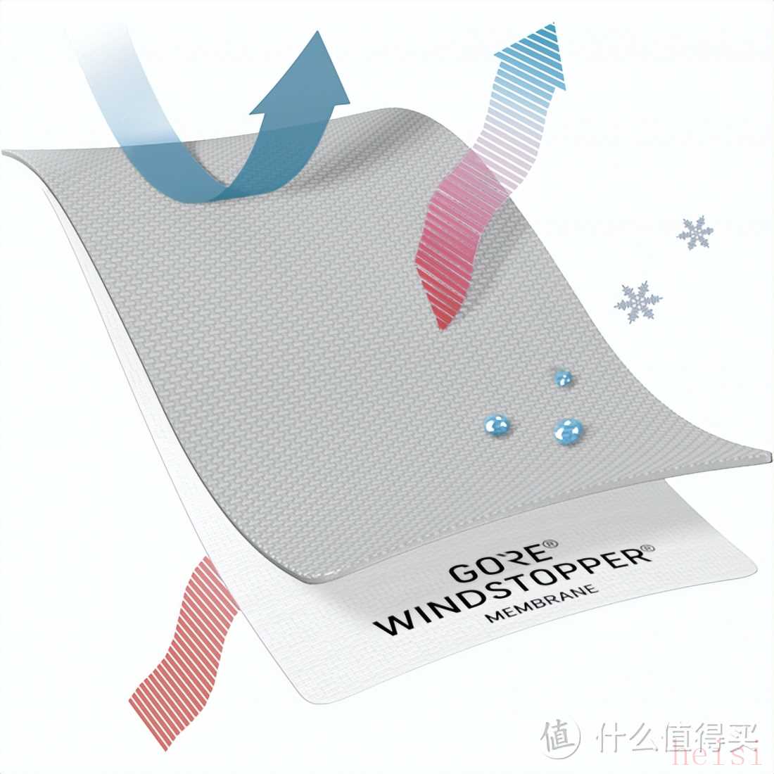 GORE-TEX INFINIUM? WINDSTOPPER?產(chǎn)品采用超輕薄保護層和輕便的紡織面料,其薄膜擁有數(shù)十億個微孔,比起水蒸氣分子大900倍,能夠排出人體的汗氣,風是無法進入的,防風性能極好。該系列的大多數(shù)產(chǎn)品還在面料表面使用了DWR防潑水技術(shù),能夠讓雨水形成水珠滾落,達到一定的防水性。