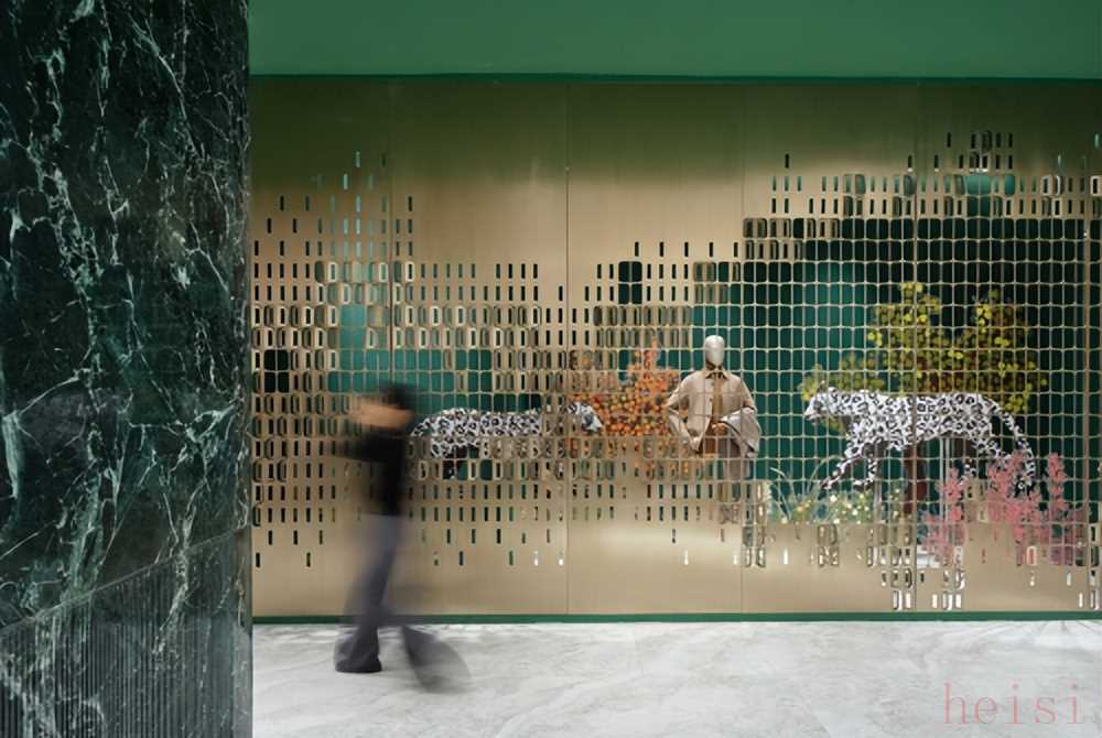 西安萬象城作為西北現(xiàn)象級商業(yè)體,擁有極高的商業(yè)地位和影響力,非常契合DIKENI迪柯尼的品牌定位和未來戰(zhàn)略布局。其“Nature | Culture | Future”的核心理念,創(chuàng)新融合自然、文化與未來元素,為消費者打造理想生活新體驗,也與DIKENI迪柯尼所倡導(dǎo)的品味穿搭、品質(zhì)生活和可持續(xù)時尚理念不謀而合。DIKENI GREEN全國首家旗艦店不僅是品牌的一次煥新升級,也是品牌踐行可持續(xù)時尚戰(zhàn)略的重要里程碑。未來,DIKENI迪柯尼將繼續(xù)通過卓越的產(chǎn)品力、奢品級的服務(wù)模式與可持續(xù)發(fā)展理念,為消費者提供高品質(zhì)的時尚生活方式,譜寫人與自然和諧共生的新篇章。都市生態(tài)·品味生活:可持續(xù)時尚生態(tài)美學(xué)空間DIKENI GREEN全國首家旗艦店的空間設(shè)計靈感源自品牌攜手中國綠化基金會打造的「REGREEN生態(tài)林」。綠洲式布局貫穿整體,原木與綠植交相輝映,半開放的設(shè)計結(jié)構(gòu)盡釋多維空間潛力。店內(nèi)各時裝系列、定制功能區(qū)、VIC ROOM及戶外花園交織成一個與自然循環(huán)交互的生態(tài)系統(tǒng),為顧客帶來綠色生活的全新體驗。古今相融·綠動新生:可持續(xù)時尚藝術(shù)長廊一條縱深十余米的自然長廊,猶如現(xiàn)代絲綢之路,將傳統(tǒng)與未來、自然與城市相連。長廊中融入阿拉善沙漠生物群的象征元素,如雪豹、雙峰駝、胡楊等,以環(huán)保工藝展現(xiàn)出從荒漠到綠洲的生命演化。非遺皮影戲裝置與現(xiàn)代時尚設(shè)計交相輝映,共同演繹相融共生的可持續(xù)時尚美學(xué)。