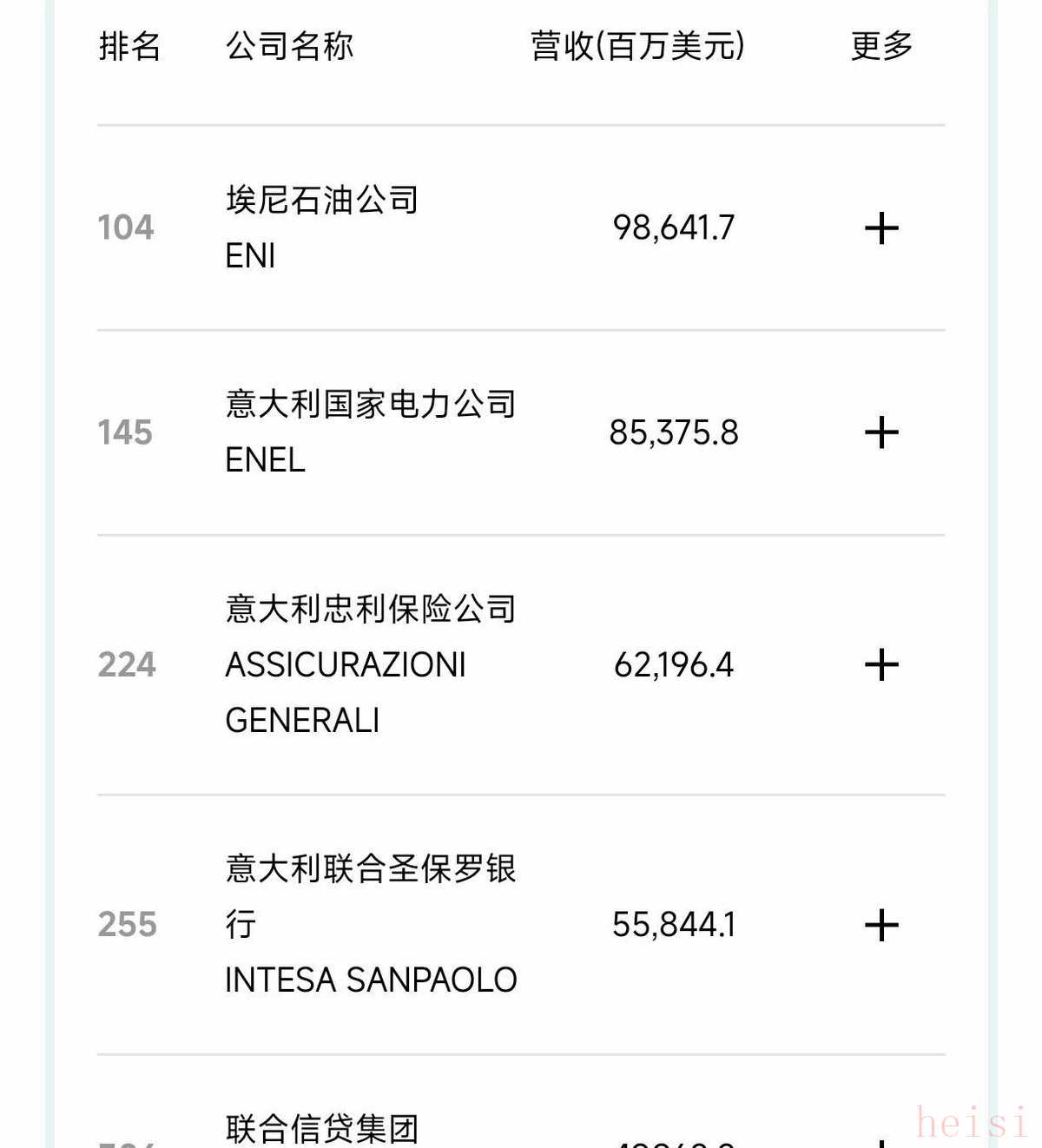 意大利在榜單上擁有5家企業(yè),雖然數(shù)量不算多,但行業(yè)特點很明顯。這5家公司里,有3家是金融業(yè)的,另外2家是能源業(yè)的。這說明金融和能源是意大利大企業(yè)的主要構(gòu)成部分,支撐著它在世界經(jīng)濟中的位置。