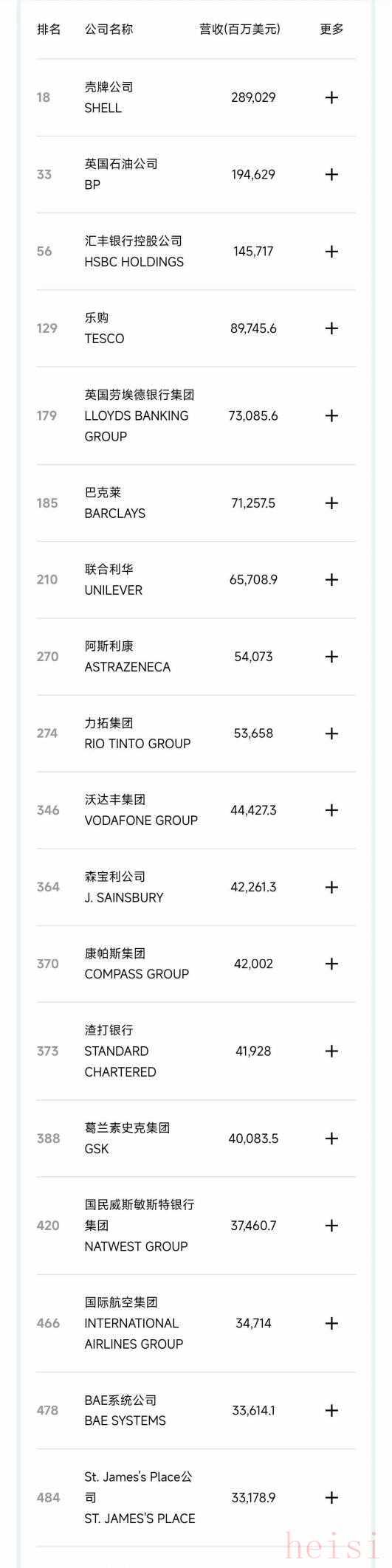 3. "英國":有20家企業(yè)位列其中,表明英國也是全球重要的經(jīng)濟體之一。英國企業(yè)在金融服務(wù)、零售、工業(yè)等多個領(lǐng)域都有顯著的表現(xiàn)。