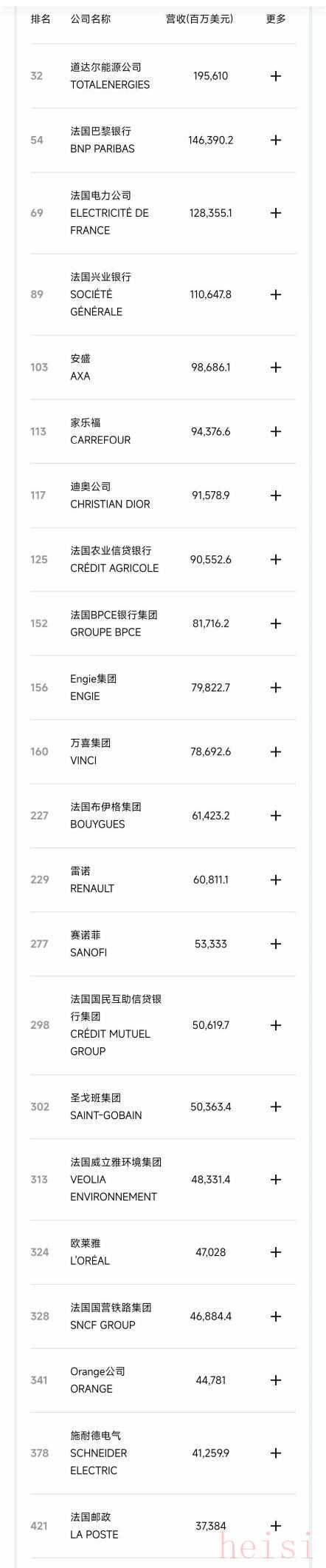 2. "法國":有24家企業(yè)進入世界五百強,同樣反映出法國經(jīng)濟的強大和其企業(yè)在全球的影響力。法國在奢侈品、航空、能源等多個領(lǐng)域有強大的企業(yè)。