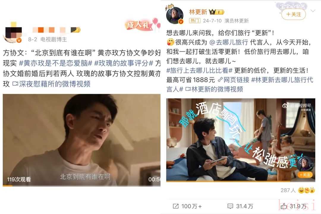 此前電視劇《玫瑰的故事》爆火,劇中林更新飾演的方協(xié)文一句“北京到底有誰(shuí)在”成為全網(wǎng)熱梗,去哪兒旅行迅速抓住電視劇熱度,林更新?lián)纹放拼匀?,還在廣告片中巧妙重現(xiàn)父女互動(dòng)場(chǎng)景,利用“更新”一詞的雙關(guān)語(yǔ)義,玩梗制造記憶點(diǎn)。