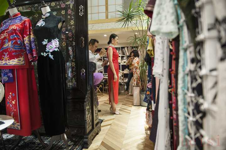 開店的是兩位老板娘,黃宸琳和周惜之。她倆是打小的閨蜜,從小就喜歡旗袍。周惜之在巴黎留學(xué)的時候,遇到了很多法國當(dāng)?shù)氐墓そ常鹤銎ば⑿掮姳?、編蕾絲……一做,就做到極致。這深深地觸動了她。正巧黃宸琳出生在絲綢世家,兩人一拍即合:開家店,把屬于中國的傳統(tǒng)旗袍做到極致!