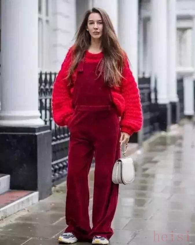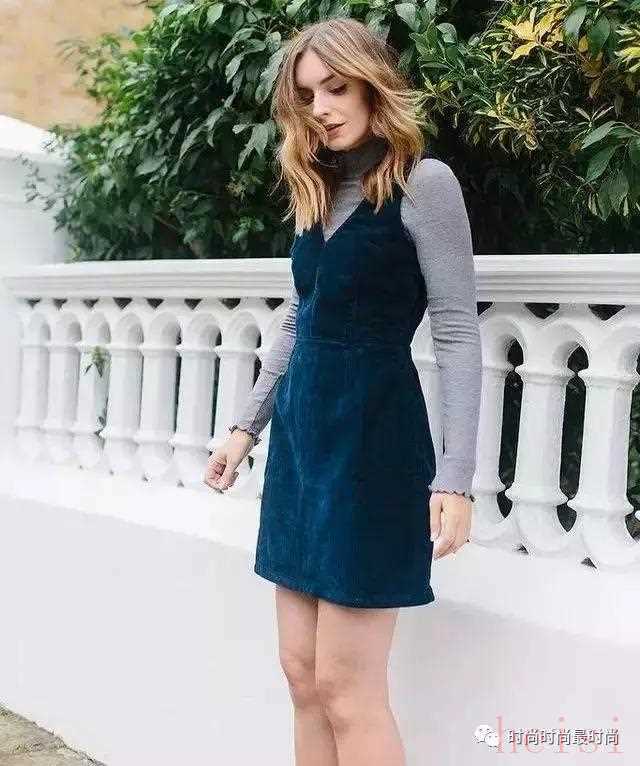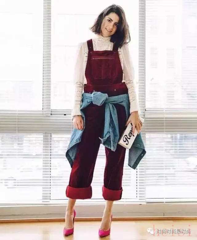 在這里龍蝦君建議選擇飽和度高的深色系燈芯絨背帶褲(裙),搭配淺色的上衣,凸顯燈芯絨的質(zhì)感。
