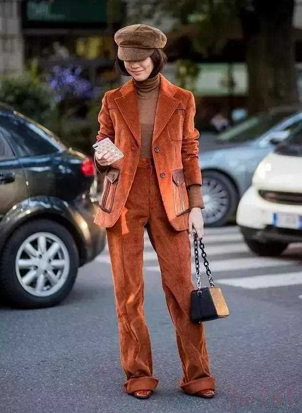 會玩的時裝精,一定會有一身燈芯絨西裝,從頭到腳同色系,不搶眼不罷休~