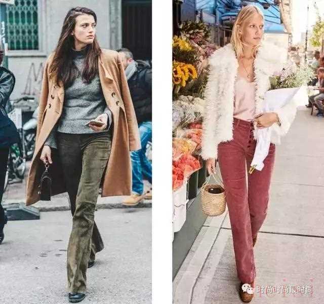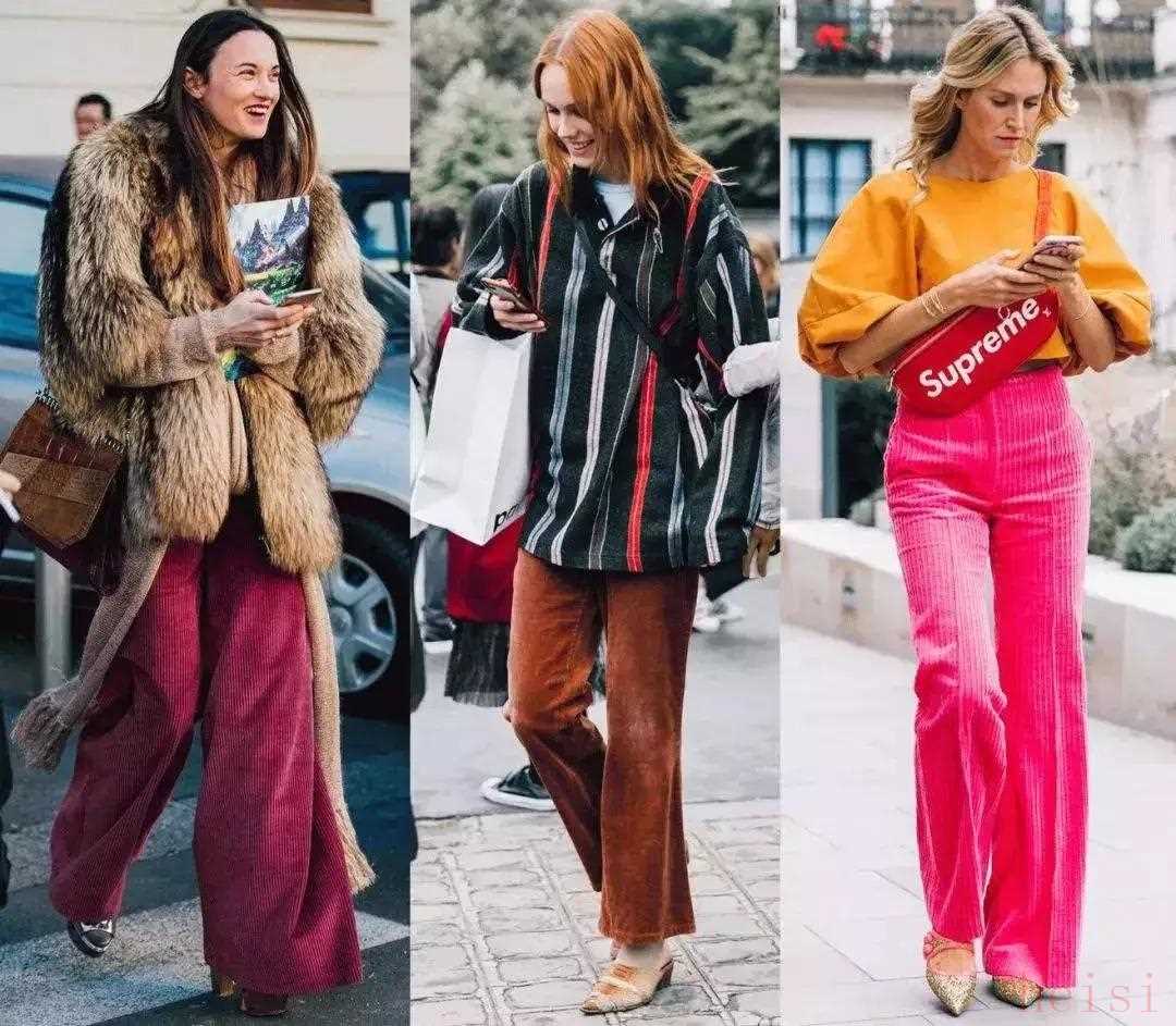 接下來就說說最受街拍達人們歡迎的燈芯絨闊腿褲和喇叭褲吧~