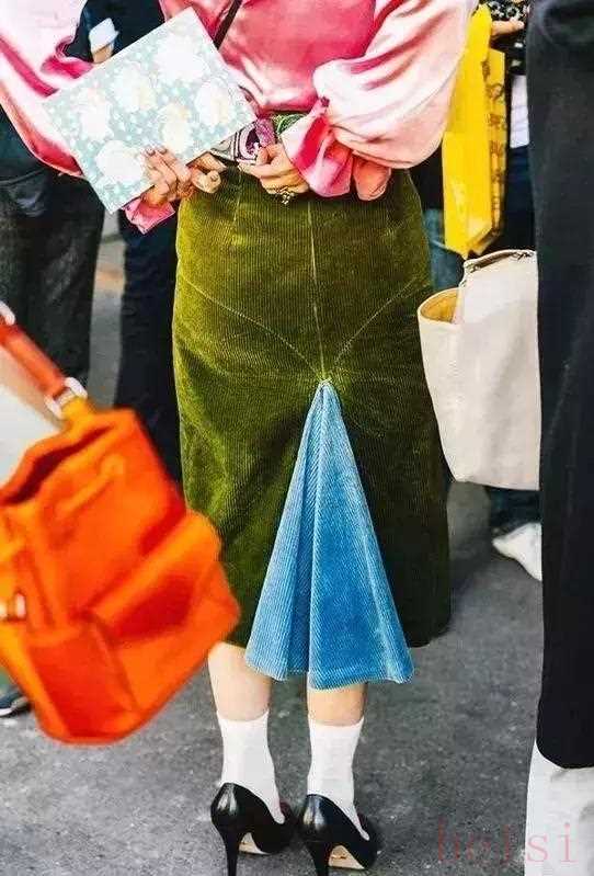 不對稱剪裁、撞色拼接等特殊的設(shè)計細節(jié),讓你的燈芯絨半裙更有新鮮感。