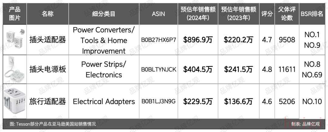 Tessan連續(xù)7年“霸榜”亞馬遜細(xì)分類(lèi)目Best Seller第一的位置。它靠一款帶USB接口的旅行插頭,撬開(kāi)全球150+國(guó)家的市場(chǎng)。在獨(dú)立站方面,Tessan則顯得比較“佛系”。一路走來(lái),Tessan經(jīng)歷了什么?(下文「品牌億觀」將具體分析Tessan的出海故事,及其在亞馬遜、TikTok、獨(dú)立站、Facebook、YouTube等渠道的具體表現(xiàn))01.在混亂的標(biāo)準(zhǔn)下,Tessan完成了適配的統(tǒng)一「品牌億觀」觀察到,許多創(chuàng)業(yè)故事,始于創(chuàng)始人對(duì)現(xiàn)實(shí)世界的“不滿意”。喻小勇之所以創(chuàng)立Tessan,也是源于他對(duì)“充電”的不滿。喻小勇在多次出國(guó)旅行中發(fā)現(xiàn),不同國(guó)家的插頭標(biāo)準(zhǔn)差異很大,自己攜帶的相機(jī)、手機(jī)、電腦等電子產(chǎn)品,經(jīng)常遇到充電緩慢、插不上等問(wèn)題,這讓他感到極為不便。彼時(shí),全球市場(chǎng)的插頭標(biāo)準(zhǔn)極度割裂,如美標(biāo)、英標(biāo)、歐標(biāo)、澳標(biāo)、日標(biāo)……彼此無(wú)法兼容。有痛點(diǎn),就有機(jī)會(huì)。喻小勇認(rèn)為,如果能夠做一款,能夠兼容各國(guó)標(biāo)準(zhǔn)的充電產(chǎn)品,一定大有市場(chǎng)。2015年,喻小勇在珠海成立鈦芯動(dòng)力公司,圍繞著品牌“Tessan”,推出電源適配器、插頭轉(zhuǎn)換器和電源排插等產(chǎn)品。其推出的首款旅行轉(zhuǎn)換插頭,適配了多個(gè)國(guó)家插座標(biāo)準(zhǔn),并自帶USB充電接口,方便手機(jī)、平板電腦直接充電。