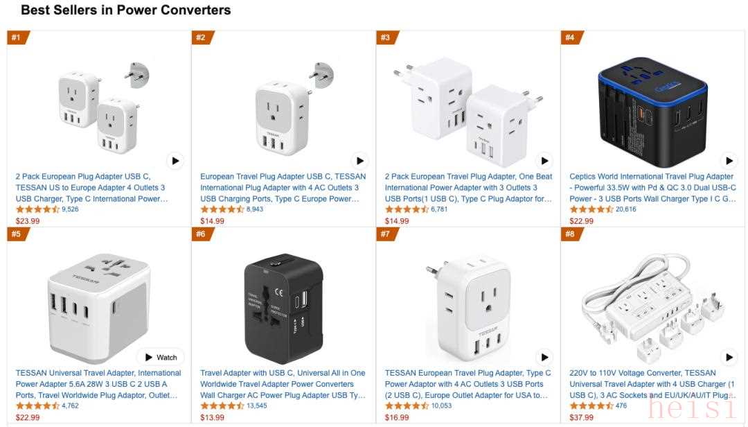 數(shù)據(jù)源/sellersprite而這種打法帶來(lái)的結(jié)果,直接反饋到了類(lèi)目的BestSeller榜單上。在Power Converters類(lèi)目下,僅Tessan的產(chǎn)品就占了7個(gè)席位。
