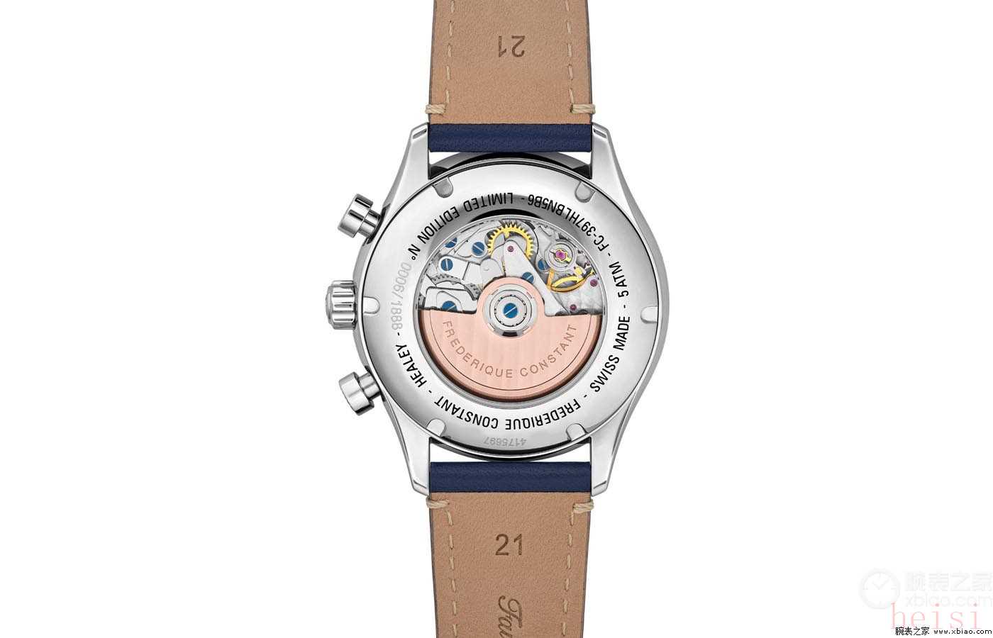 通過透視表背,可以欣賞內(nèi)置的FC-397自動計時機芯。該機芯振頻28,800次/小時(4赫茲),能夠提供62小時動力儲存。這款腕表隨附藍色小牛皮表帶,搭配針式表扣。該腕表限量發(fā)行1,888枚,標價2,995英鎊。(圖/文 腕表之家 許朝陽)