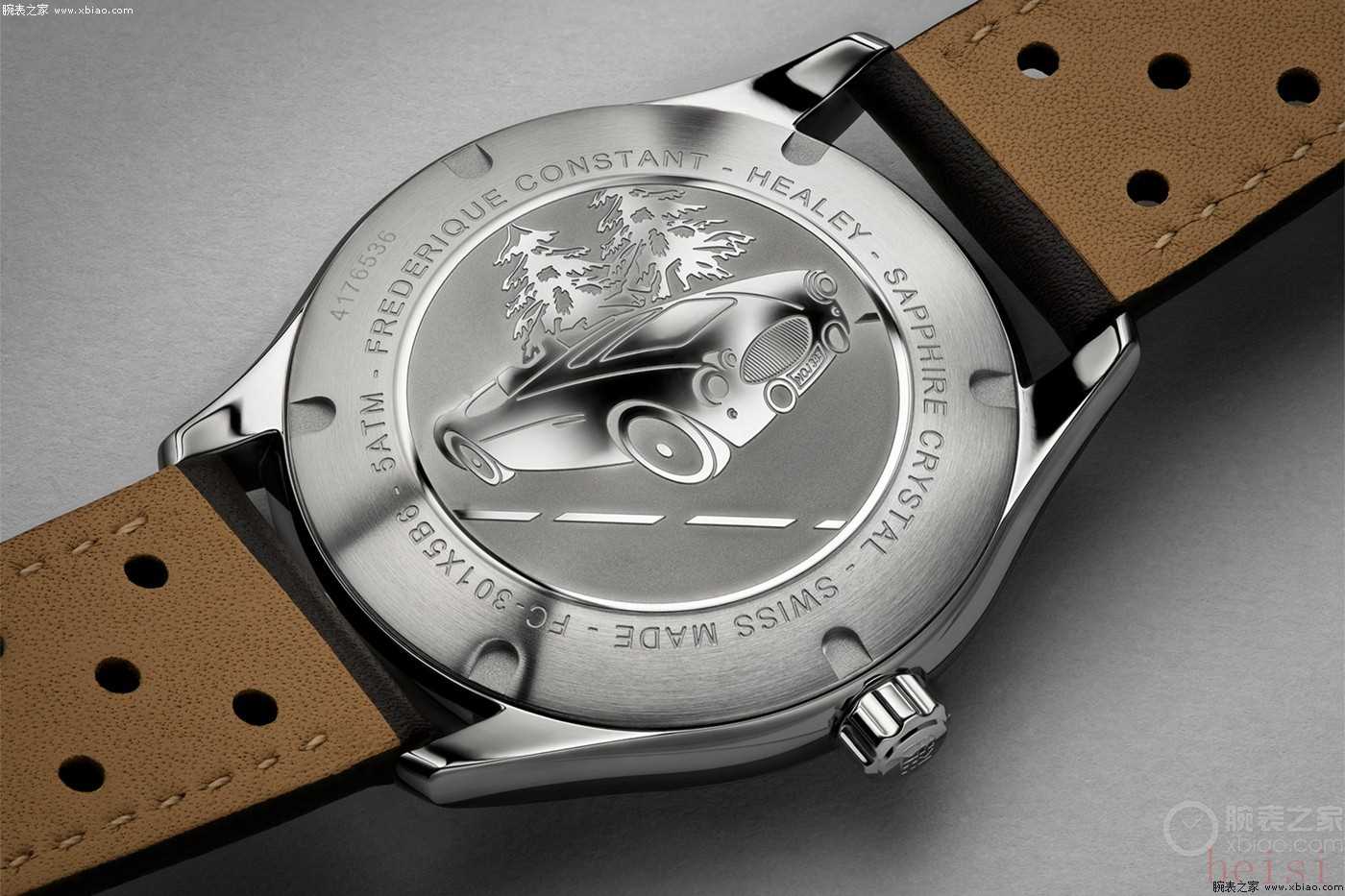 底蓋鐫刻奧斯汀·希利3000 MKII圖案,內(nèi)置FC-303自動機芯。該機芯振頻28,800次/小時(4赫茲),能夠提供38小時動力儲存。這款腕表隨附藍色小牛皮表帶,搭配針式表扣。該腕表限量發(fā)行1,888枚,標價1,295英鎊。
