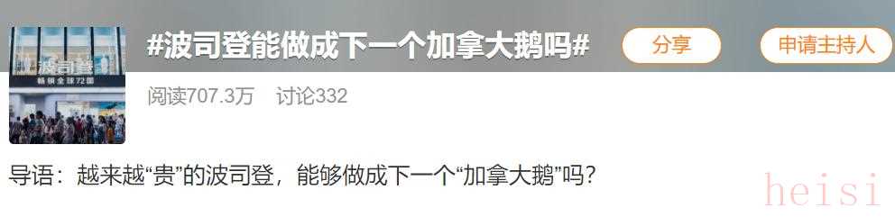 這意味著,波司登的市值是加拿大鵝的2倍多。