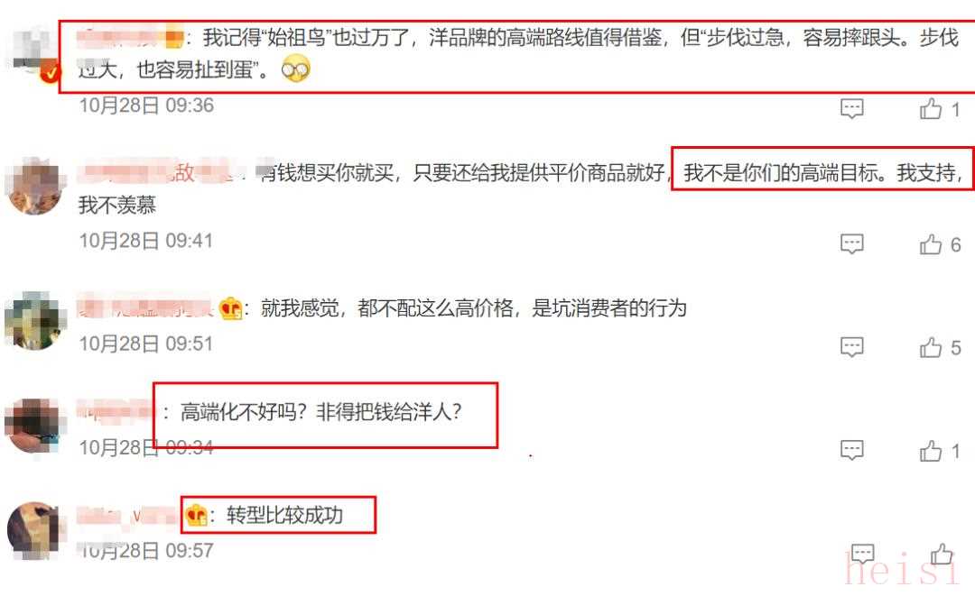 但有的表示認(rèn)可,“我不是你們的高端目標(biāo)。我支持,我不羨慕”,“高端化不好嗎?非得把錢給洋人?”