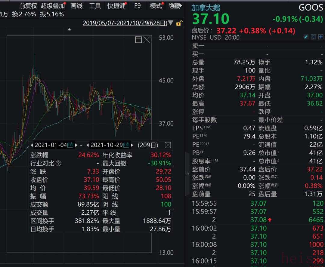 "“1個(gè)波司登 = 2個(gè)加拿大鵝”" 這個(gè)說(shuō)法,通常是指在中國(guó)股市(或其他主要交易市場(chǎng))上,按當(dāng)時(shí)的股價(jià)計(jì)算,波司登(股票代碼:600732)的總市值大約是加拿大鵝(在納斯達(dá)克交易,股票代碼:GOOSY)市值的