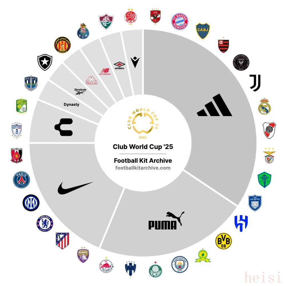 此外,據(jù)Football Kit Archive統(tǒng)計(jì),在已確認(rèn)的31支世俱杯參賽球隊(duì)中,彪馬獨(dú)占7席,是僅次于阿迪的球衣贊助品牌。