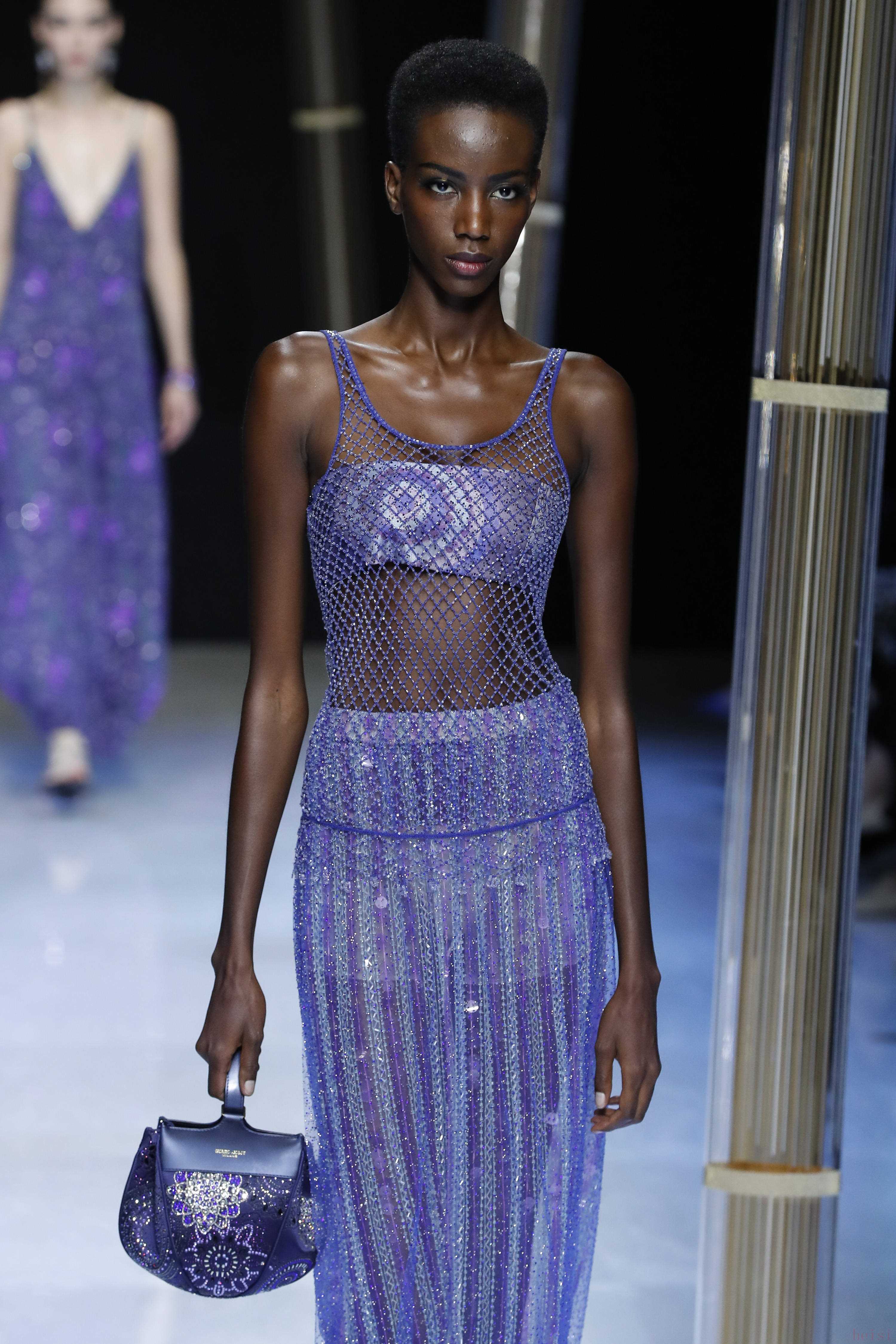 9月25日,模特在意大利米蘭時裝周上展示喬治·阿瑪尼品牌的2023春夏新款服裝。 新華社/歐新