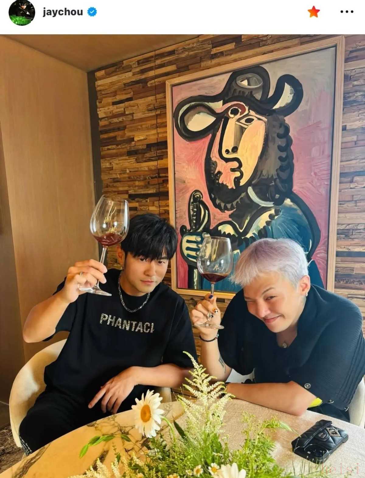 這次兩人的合影由周杰倫親自官宣——一向寡言的周董倒是顯得很有心,ins一更新,三張照片直接刷屏網(wǎng)絡(luò):一個(gè)高舉酒杯笑得隨性,一個(gè)作出經(jīng)典的wink表情搞怪十足。權(quán)志龍的look依舊那般時(shí)尚鬼馬,而周杰倫也在一身黑色潮服的襯托下依舊少年氣滿(mǎn)滿(mǎn)。這份氛圍感寫(xiě)真一般的同框,配上臺(tái)北夜空的背景,真的讓人不得不感嘆:“你們是真的會(huì)玩!”