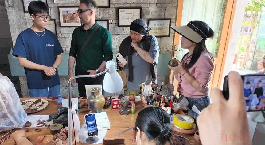 意大利設(shè)計(jì)師尼科拉與瑪利亞體驗(yàn)榮昌陶。受訪單位供圖