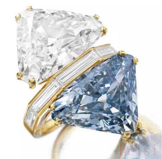 這枚最昂貴的戒指是1972年用寶格麗收藏的藍色鉆石打造的,重10.95克拉,第二枚三角形的鉆石是白色的,重9.87克拉。2010年5月,一名亞洲收藏家以1570萬美元的價格購得。