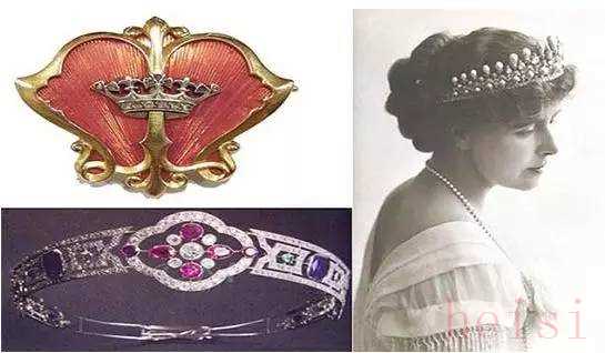 這枚胸針曾經(jīng)屬于羅馬尼亞的瑪麗皇后。她是亞歷山大二世大帝的孫女。胸針由卡爾?法貝熱設(shè)計,呈心型,上面有王冠的圖形裝飾。