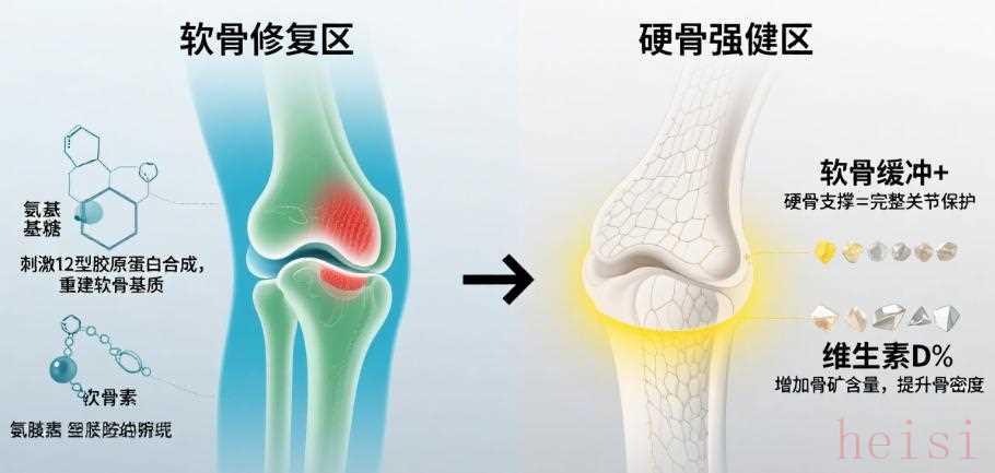 四維協(xié)同配方,開啟關節(jié)養(yǎng)護新維度:強貝冠率先打破傳統(tǒng)單一氨糖補充模式,創(chuàng)新性地引入“氨糖+軟骨素+鈣+維生素D3”四維協(xié)同配方。維生素D3的加入,如同為關節(jié)健康裝上了高效吸收引擎。石家莊的劉女士,因長期伏案工作肩頸僵硬,服用強貝冠三個月后感慨:“以前光補鈣感覺沒‘著落’,現(xiàn)在關節(jié)靈活多了,連帶著后背都輕松不少?!边@種多成分協(xié)同作用,實現(xiàn)了軟骨修復與硬骨強化的同步進行,權威研究證明,這款產品能顯著提升骨密度,效果提高約50%,全面實現(xiàn)修復軟骨、強化硬骨、保護關節(jié)的護理。
