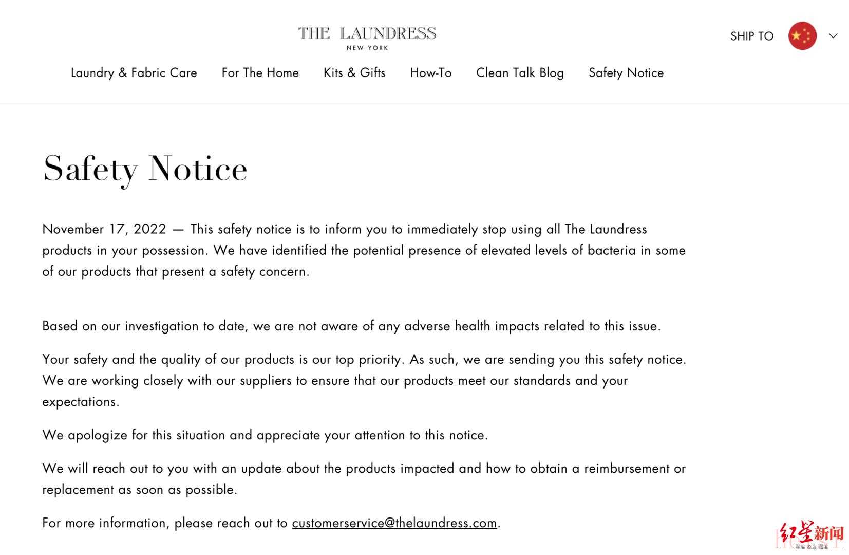 THE LAUNDRESS安全隱患通知 圖源:品牌官網(wǎng)