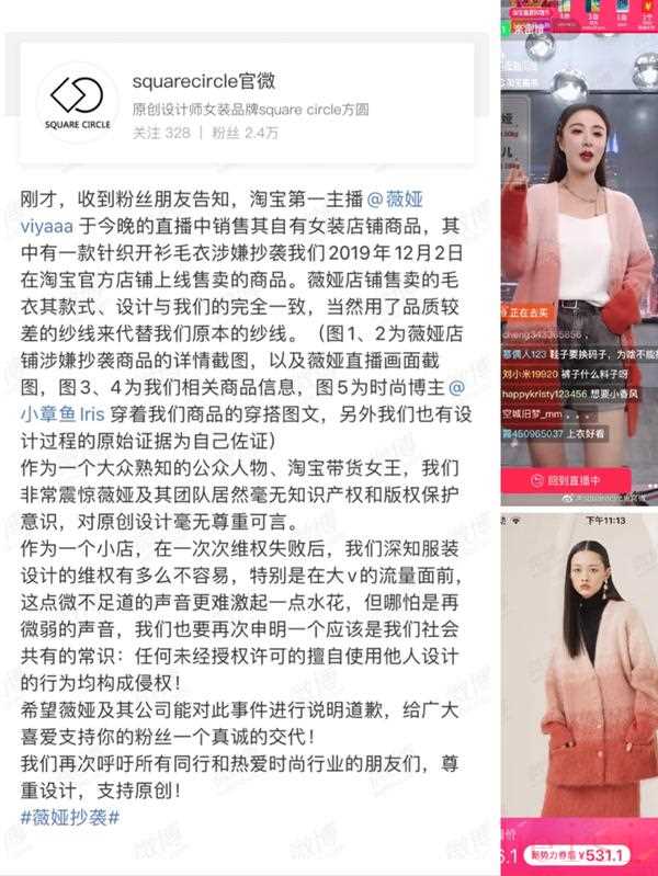 薇婭帶貨毛衣陷入抄襲爭(zhēng)議