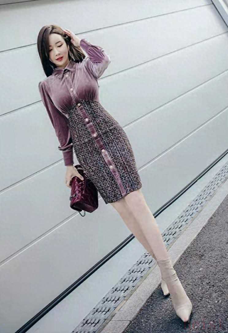 今天為大家推薦的就是輕奢風長袖金絲絨的打底包臀連衣裙的穿搭,小香風的氣質(zhì),帶給你更多的奢華性感的造型。色彩上采用亮紫色。職業(yè)范的設(shè)計風格,采用修身的版型,展現(xiàn)女性S型身材曲線,簡答大氣的設(shè)計,看起來卻是奢華無比,單排扣的點綴,讓整體裙子更加的有設(shè)計感。包臀的設(shè)計,起到了提臀的效果,身材更加豐滿,看起來是那么的典雅大氣。絕對能達到你想要的穿搭效果。