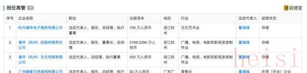 啟信寶數(shù)據(jù)顯示,董海峰為14家公司的法人,其中包括謙尋控股、謙尋文化、謙尋娛樂、杭州謙壹企業(yè)管理合伙企業(yè)(有限合伙)等。