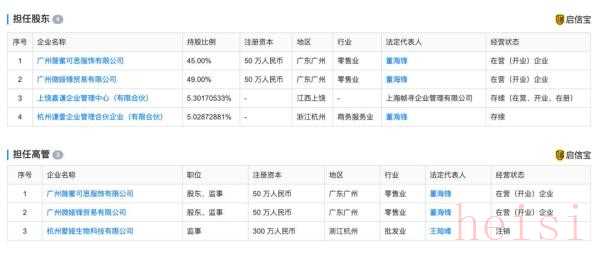 相較于薇婭而言,其丈夫董海峰則更多料理公司事務(wù),且身份繁多。
