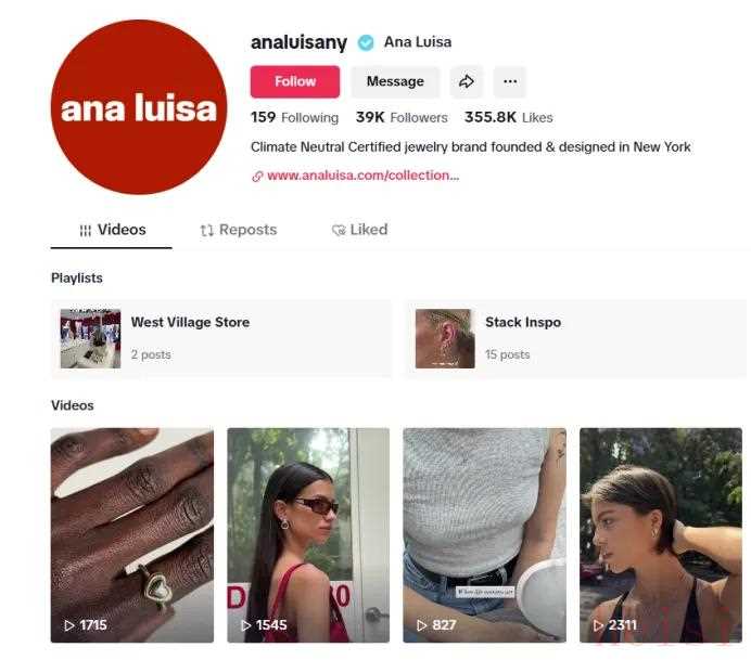 圖源:TikTok強(qiáng)大的營銷策略也帶來了亮眼的市場表現(xiàn)。2021年,Ana Luisa完成14.5億美元融資,年銷售額突破4000萬美元,成為環(huán)保珠寶領(lǐng)域的標(biāo)桿品牌。