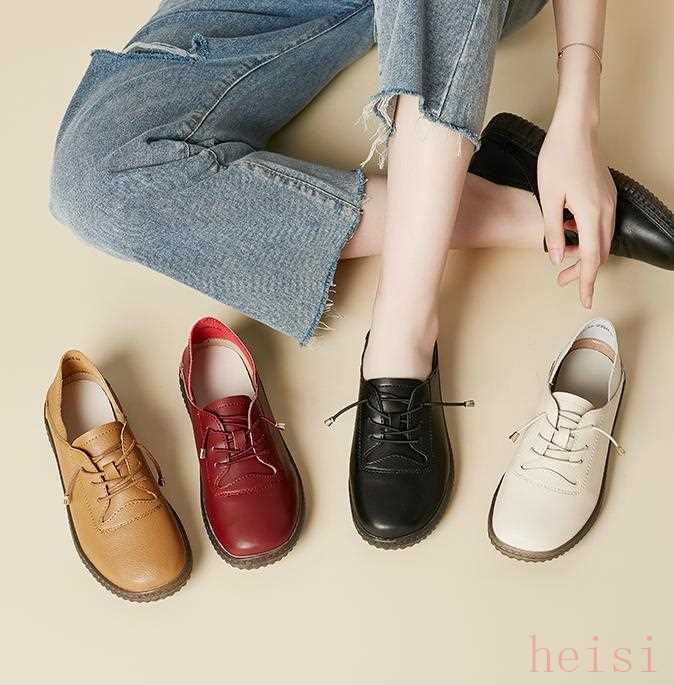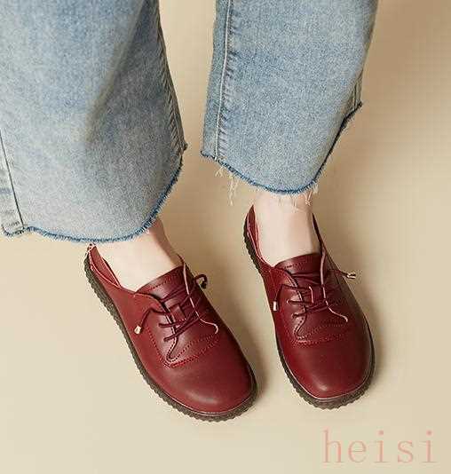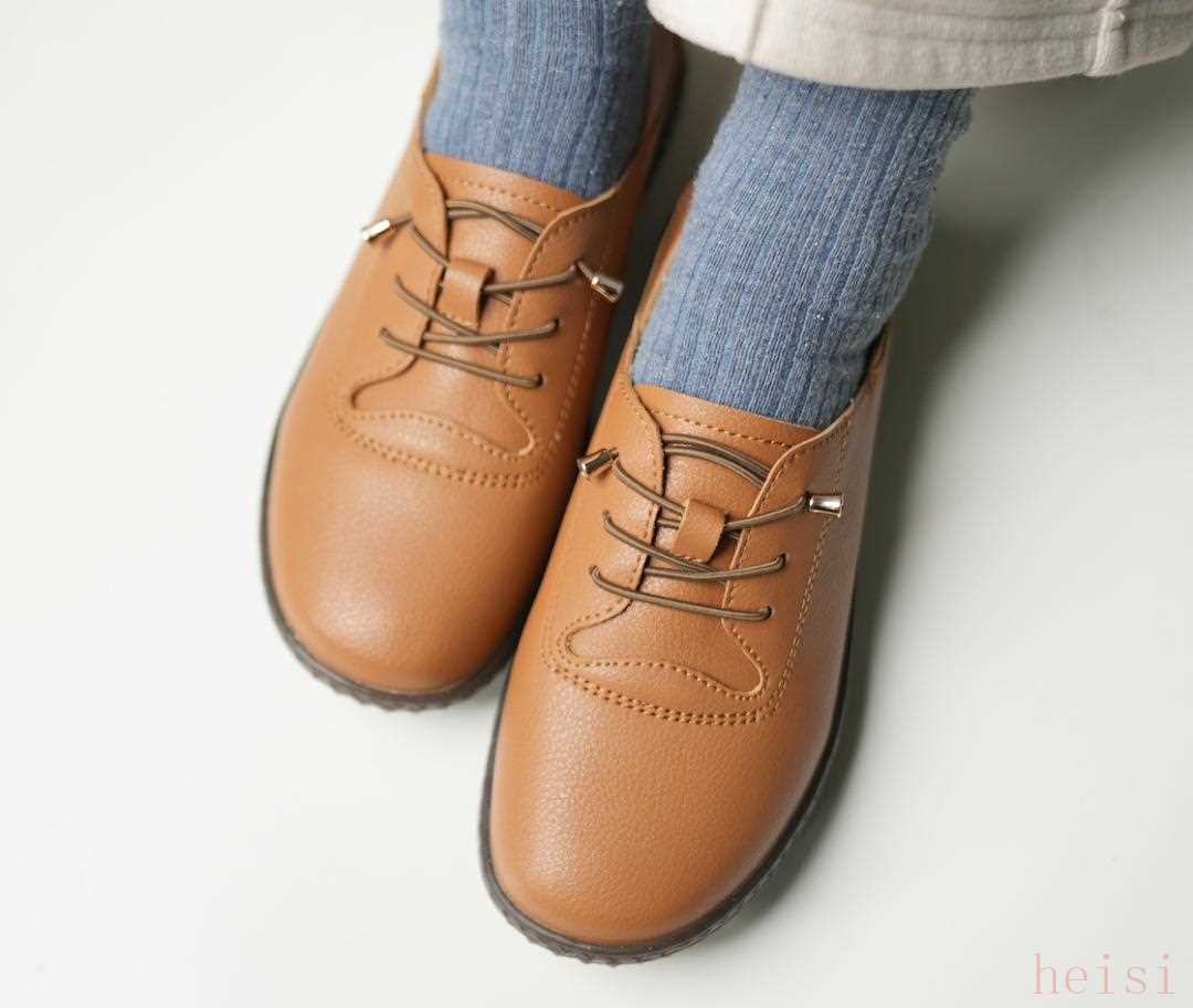 滿滿的復古風,圓頭設計,腳寬的女士也很好穿,松緊鞋帶設計,不用綁,非常方便。