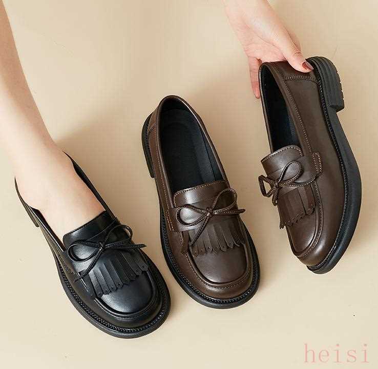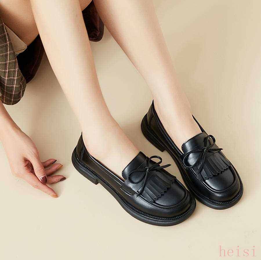 這款鞋子是在樂福鞋的基礎上再設計,原先的金屬扣,改成了流蘇設計,增添了淑女氣息,非常百搭。
