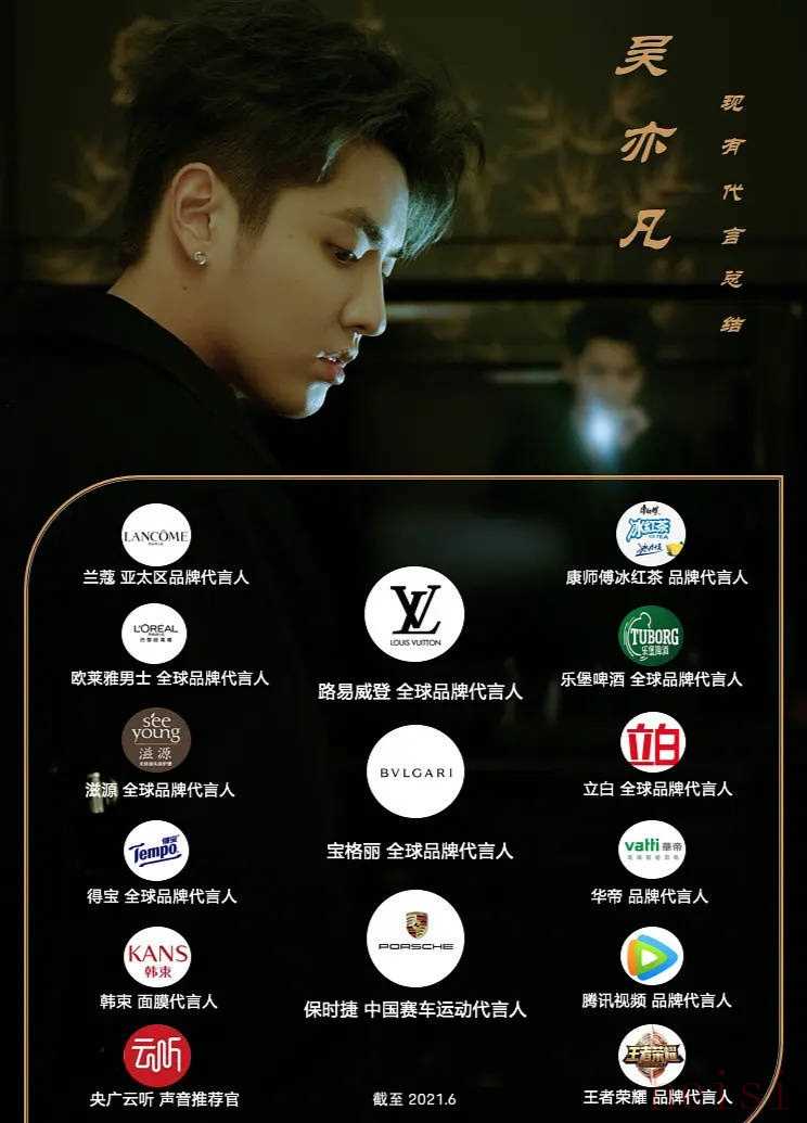 6. "L'Oréal Paris (巴黎歐萊雅):" 作為國際知名的護(hù)膚美妝品牌,與吳亦凡的合作覆蓋了更廣泛的消費(fèi)群體。