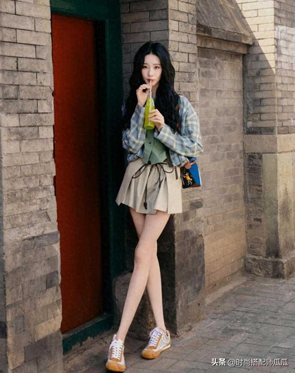 ★簡(jiǎn)約少女風(fēng)→運(yùn)動(dòng)短裙+Loewe德訓(xùn)鞋+短襪