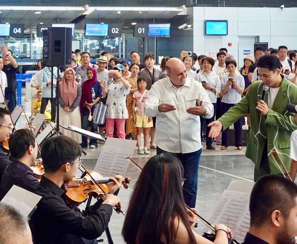 當(dāng)天文藝演出熱鬧紛呈,既有機(jī)場(chǎng)、航司員工的快閃走秀,也有上海輕音樂(lè)團(tuán)、上海芭蕾舞團(tuán)等專業(yè)機(jī)構(gòu)的精彩整點(diǎn)演出,還有春晚同款“機(jī)器人”“機(jī)器狗”舞蹈表演,吸引旅客紛紛駐足欣賞拍照留念。虹橋機(jī)場(chǎng)開(kāi)展了駐樓單位制服秀、東航年代制服秀和摩登旗袍秀,音樂(lè)快閃三重奏《茉莉花》《荷塘月色》《卡農(nóng)》和四重唱《我和我的祖國(guó)》;浦東機(jī)場(chǎng)舉行了40人交響樂(lè)主題演出《聽(tīng)見(jiàn)上海的光》以及芭蕾舞快閃表演,弘揚(yáng)紅色文化、海派文化、江南文化,上海機(jī)場(chǎng)成為向中外旅客展示中華文化的生動(dòng)窗口。