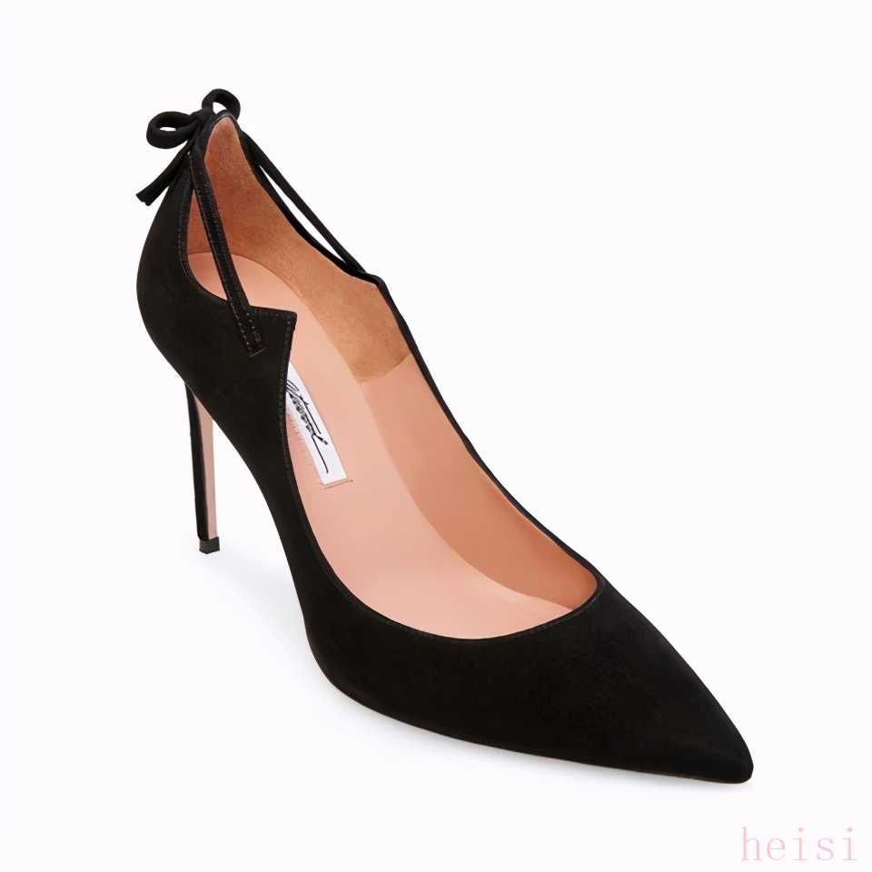 黑色絨面的高跟鞋基本都是成熟風,顏色本身就比較沉悶,一般沒有歲月沉淀的女人是不太好駕馭的。但這雙高跟鞋在鞋后跟部加上了蝴蝶結設計,小巧又簡約的樣子讓線條感瞬間活躍起來,打破了原有的沉悶,又不會過于俏皮。