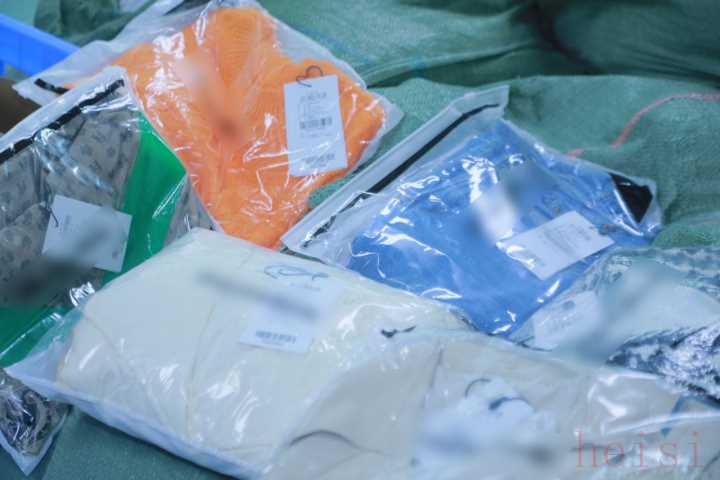 在“保護(hù)知識產(chǎn)權(quán) 護(hù)航企業(yè)發(fā)展”案件通報(bào)會上,拱墅警方公布了一段執(zhí)法視頻。視頻中,大量衣服無序堆疊在桌面上。包裝貼標(biāo)后的則成摞擺放在藍(lán)色貨架上,并附著便利貼標(biāo)注款式、型號。地上麻袋、紙箱里也裝著部分成品。