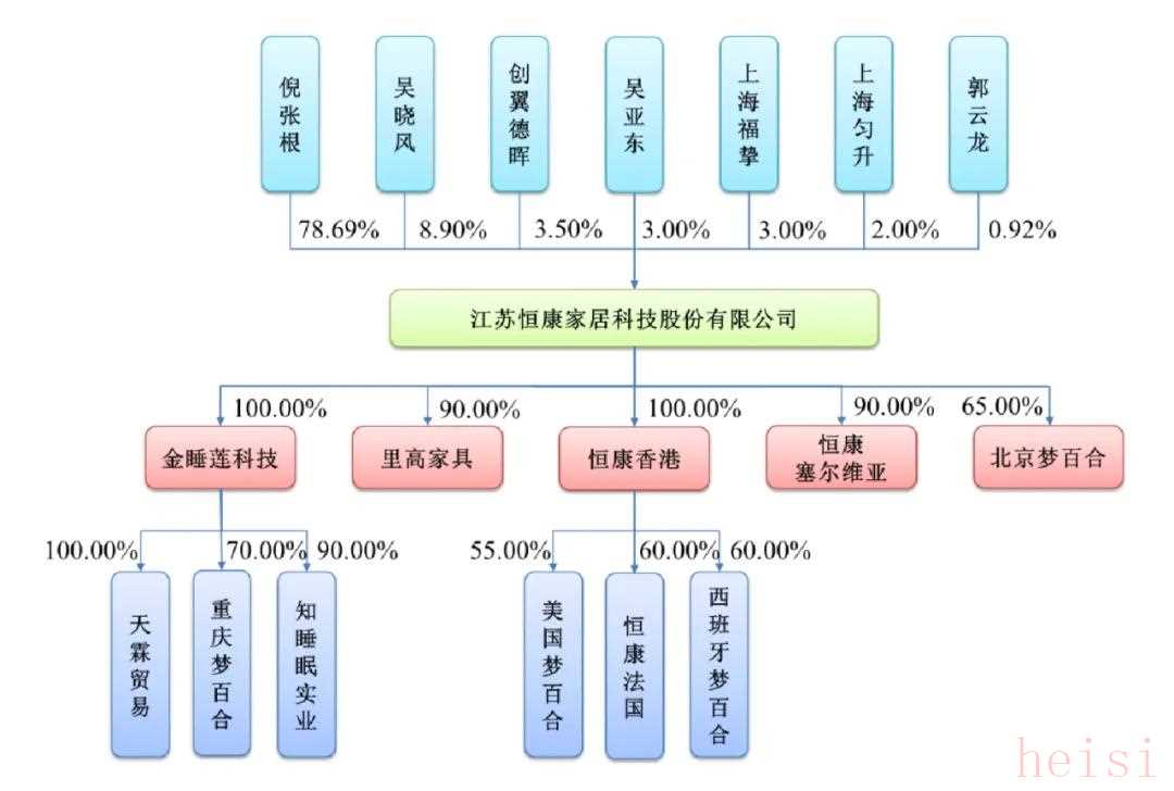 恒康家居上市時的股權(quán)架構(gòu)2016年,倪張根還帶領(lǐng)夢百合成為英超足球俱樂部曼聯(lián)隊的贊助商。