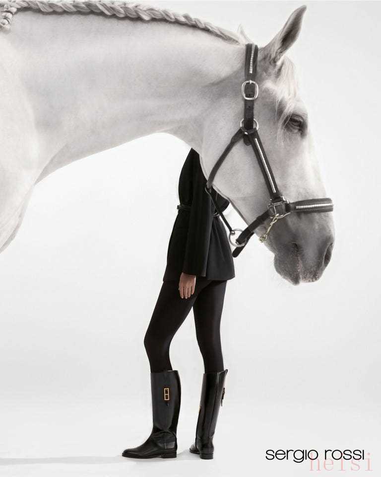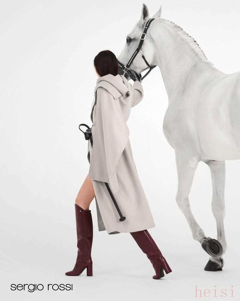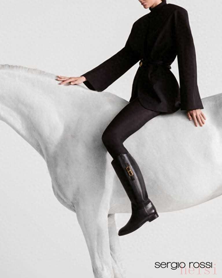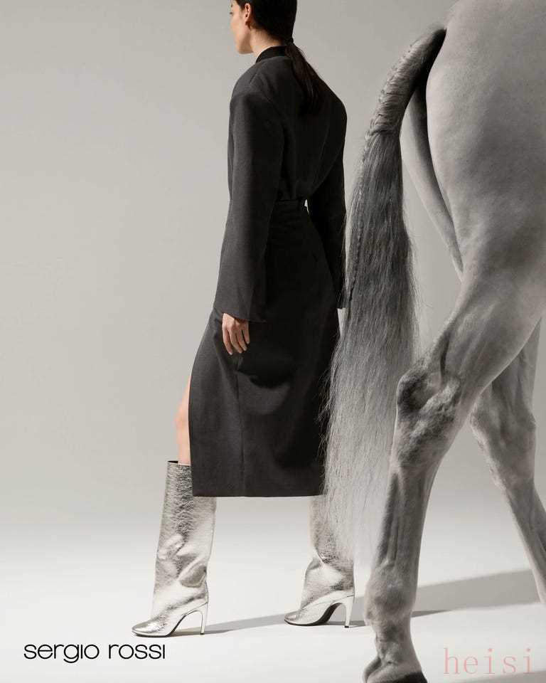 該系列大片從經(jīng)典的馬術(shù)世界中汲取靈感,以側(cè)鞍騎術(shù)起源作為起點,開啟了一段具有前瞻性的旅程。駿馬作為優(yōu)雅、力量與自由的象征,成為了Sergio Rossi女性的強大隱喻。品牌標(biāo)志性的鞋履設(shè)計巧妙呼應(yīng)駿馬優(yōu)雅的形態(tài),凸顯了傳統(tǒng)與現(xiàn)代風(fēng)格的完美融合。