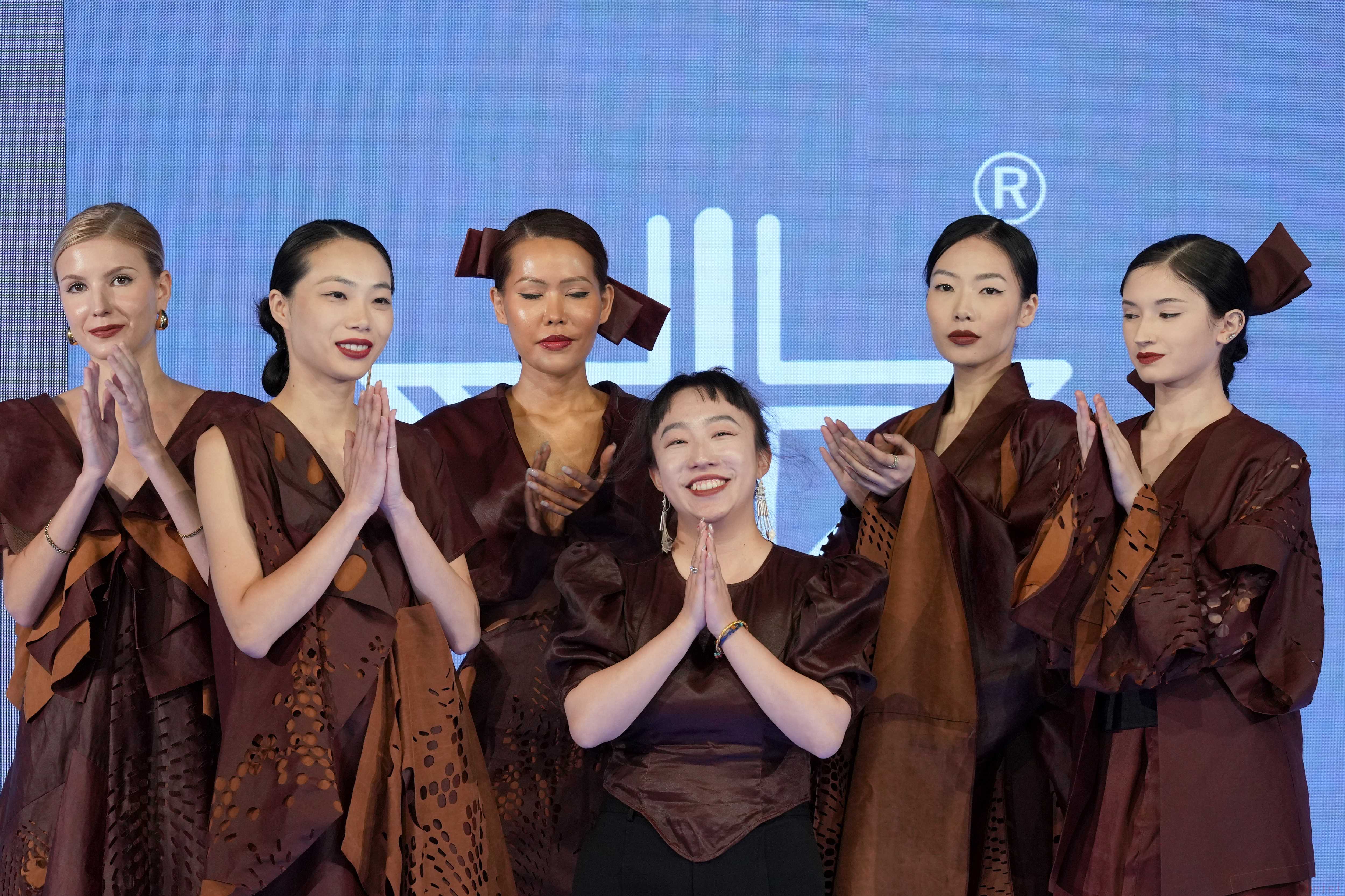 “第一次看到這種面料時(shí),我就被深深吸引,萌生了以香云紗為基石進(jìn)行創(chuàng)業(yè)的想法?!本桥c海韻系列在本次大秀的成功展出,標(biāo)志著金泳萱實(shí)現(xiàn)了自己的一個(gè)小目標(biāo)。