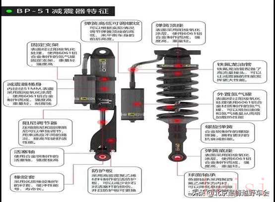 懂車的人都知道,底盤懸架上有一根黑色的柱子,根據(jù)不同車型,分居彈簧內(nèi)外都有。這種螺旋式彈簧的作用,只是緩沖了輪胎與地面的撞擊。但因為螺旋彈簧受到?jīng)_擊后就會不停地來回跳動,也就是說,輪胎彈起來就收不住,不停地彈跳,那咋辦?這時候就需要這個不起眼的減震器去壓制住它。減震器的好壞直接影響我們的駕乘舒適度,市場上有很多種類的減震器,比如液壓減震器、氣壓式減震器、電磁式減震器、氮氣減震器等。今天北京巔峰越野車會就來聊聊越野車改裝時常用的減震器,排名不分先后。