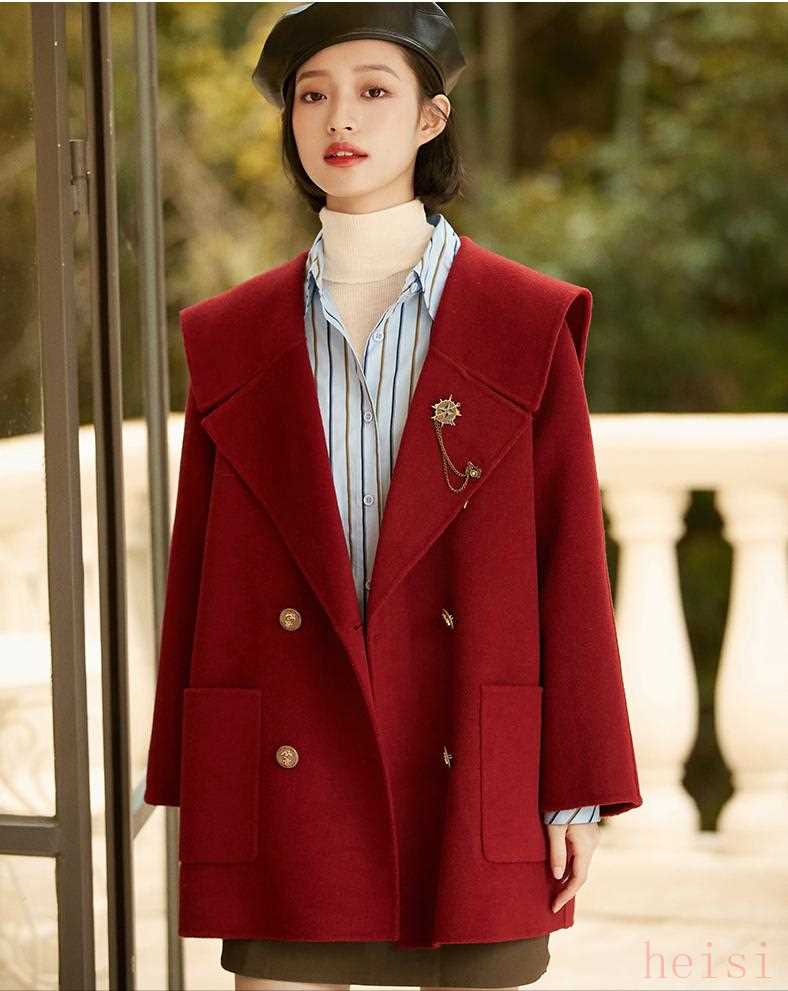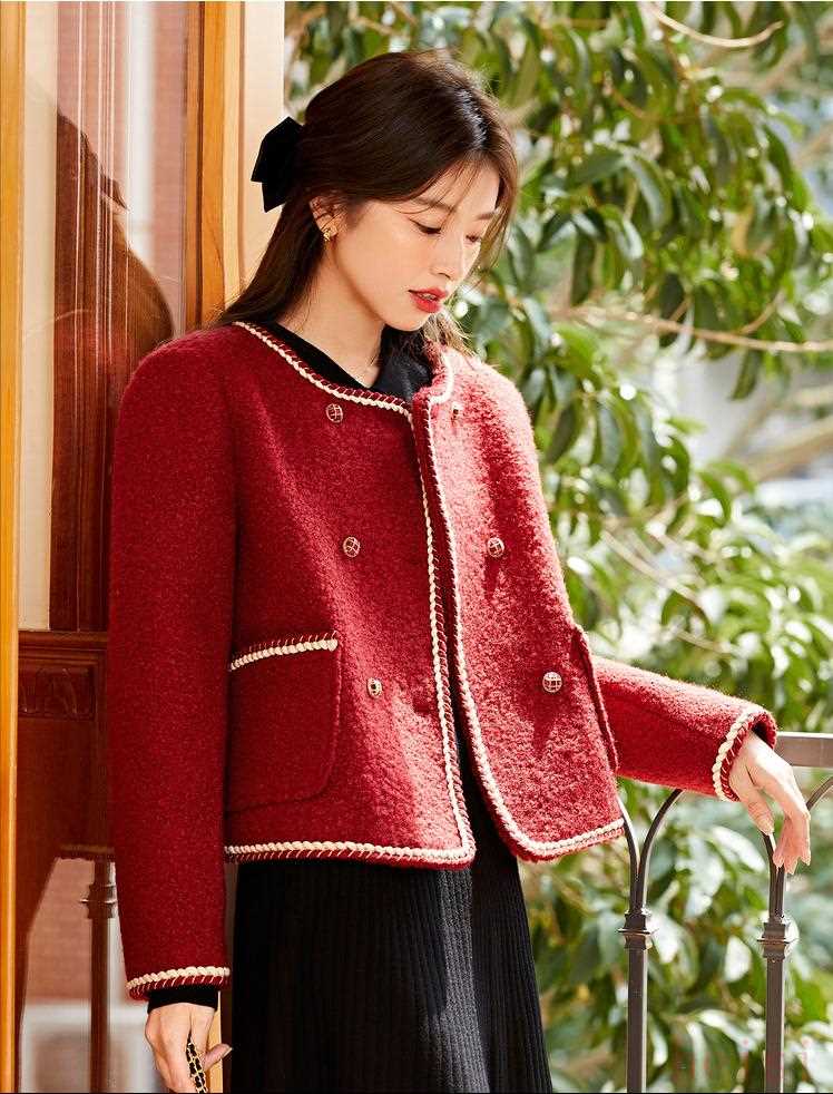 紅色的這套小香風(fēng)外套,版型很經(jīng)典,搭配黑色百褶裙非常好看。
