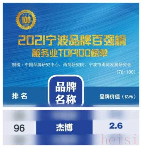 特別值得一提的是,作為寧波本土人力資源品牌的浙江杰博人力資源股份有限公司“杰博”品牌,入榜2021寧波品牌百強(qiáng)榜之服務(wù)業(yè)TOP100榜單,排名第96位,品牌價(jià)值達(dá)2.6億元,是唯一一家進(jìn)入榜單的人力資源機(jī)構(gòu)。