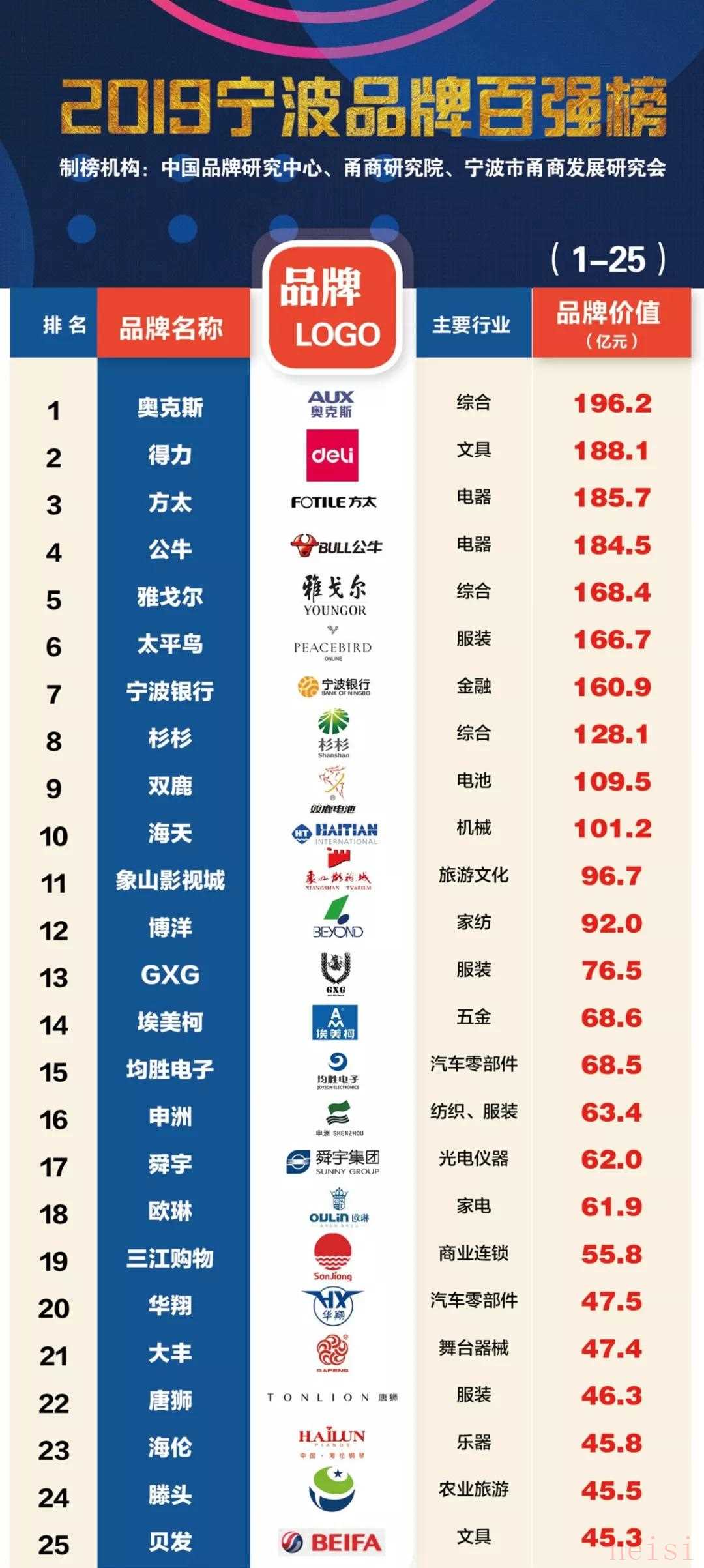 剛剛,2019年“寧波品牌百?gòu)?qiáng)榜”新鮮出爐。奧克斯以196.2億元品牌價(jià)值位居第一,得力、方太緊隨其后。而去年的“狀元郎”公牛以微弱差距屈居第四。