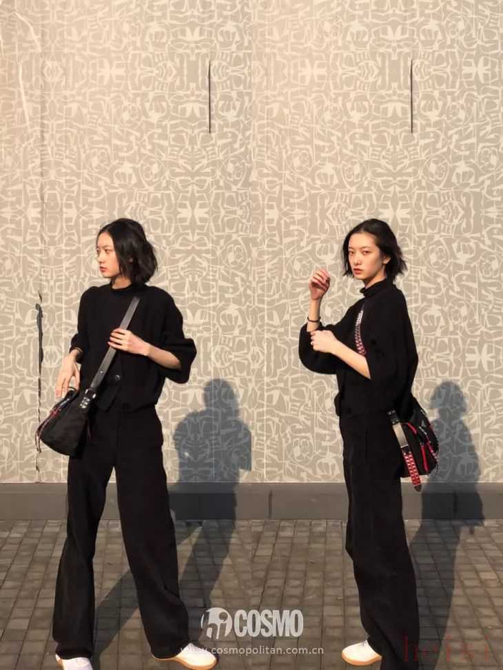 走潮范兒的Cici也不會過多追求當(dāng)下的流行款,萬能的黑白色居多,但用一點點單品點亮整套look就足夠。