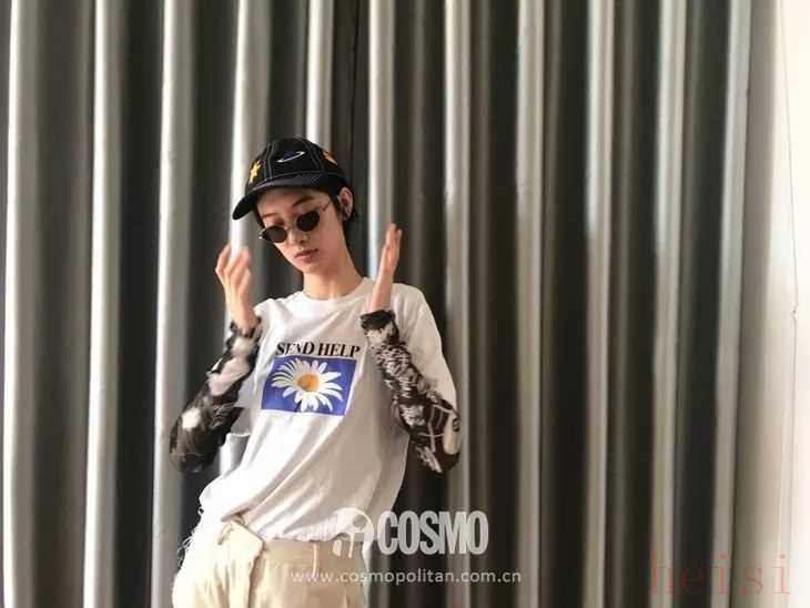 印花打底穿在T恤里,配上復(fù)古圓形墨鏡和涂鴉帽子,成為整條街上最炫酷的崽~