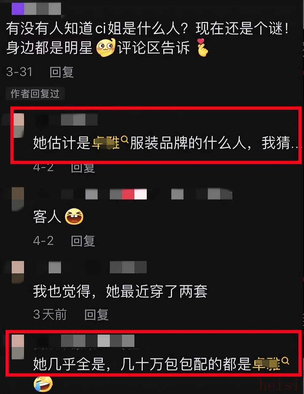 當(dāng)然,也有不少網(wǎng)友從Cici的服裝上下手,認(rèn)為她是某服裝品牌的創(chuàng)始人。因?yàn)槎俣鄺l視頻中,Cici格外鐘愛(ài)某品牌的女裝。