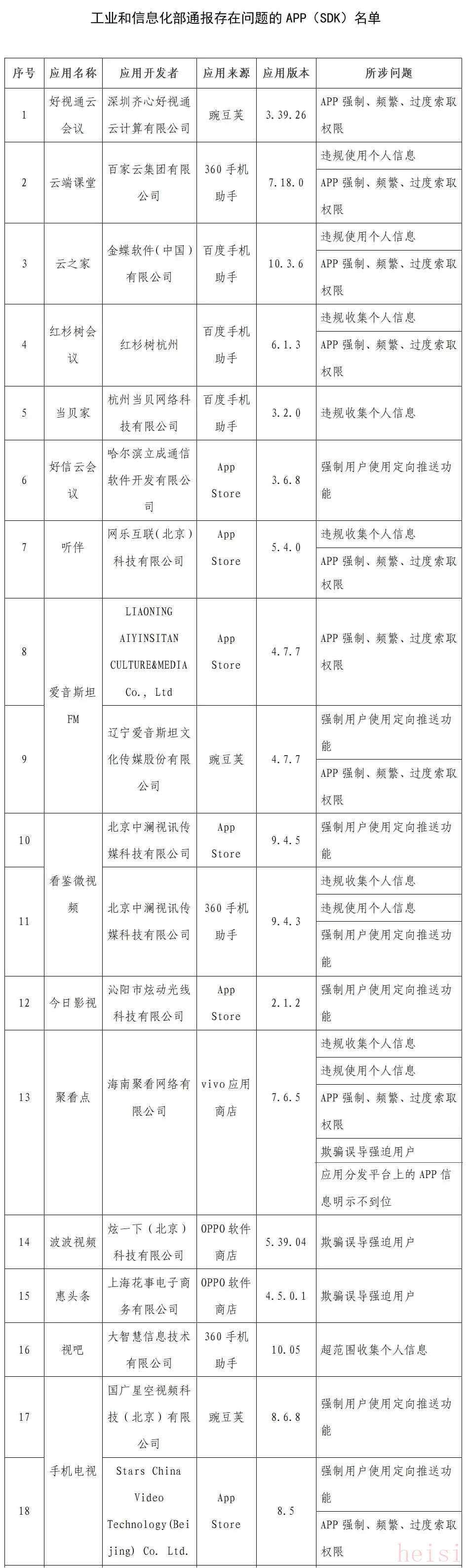 近日,工信部通報2022年第一批侵害用戶權(quán)益的APP,共包含107款A(yù)PP,視頻、直播軟件成為重災(zāi)區(qū)。總的來看,未完成整改的APP主要是資訊、視頻、直播類軟件,包括好視通云會議、云之家、當貝家、愛音斯坦FM、今日影視、波波視頻、手機電視、惠、龍珠直播、熱貓直播、小熊直播等,問題集中在“強制用戶使用定向推送功能”“違規(guī)收集個人信息”“超范圍收集個人信息等”方面。